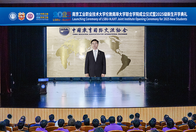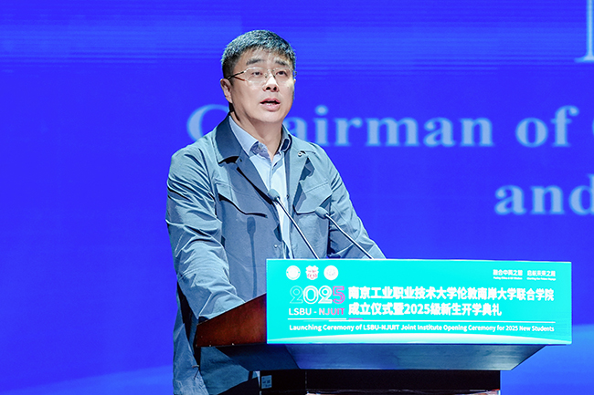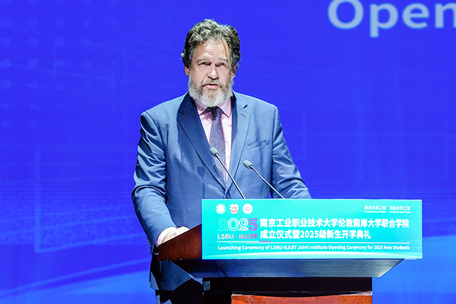 斯图亚特·班纳曼在致辞中表示,与南京工业职业技术大学携手成立联合学院,意义非凡。他对南工的热情接待与精心筹备表示衷心感谢,并指出,这标志着两校合作迈上新台阶。伦敦南岸大学创立于1892年,始终坚持以实践为导向、以社会需求为核心的教育理念,在工程技术与应用科学领域享有盛誉。学校连续三年在《泰晤士高等教育影响力排名》中跻身“减少不平等”全球前十,毕业生薪资位居伦敦现代大学首位。班纳曼指出,教育的使命不仅在于传授知识,更在于激发创新精神与社会责任。此次合作将把中英两国的优质教育理念与资源有机融合,为学生提供兼具学术深度与实践导向的学习平台。最后,他寄语首届学生,要珍惜学习机会,拓展国际视野,在多元文化中汲取智慧,成为具有创新精神与社会担当的新时代青年。