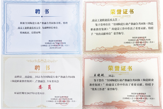 全国陶瓷行业产教融合发展大会暨全国陶瓷行业产教融合共同体(陶瓷职业教育集团)换届会议于10月22日在景德镇隆重举行,大会以“产教共生·数智焕新:构建陶瓷高质量发展人才引擎”为主题,共商陶瓷行业产教融合新路径。本次大会有来自全国18个省份的500余名院校代表、企业精英、行业协会专家参加。会上,发布了2025年全国陶瓷行业优秀产教融合案例、共同体(职教集团)专家委员会名单,表彰了突出贡献单位、优秀工作者,并完成了与头部企业签约。我校当选为共同体(职教集团)副理事长单位并被授予突出贡献单位称号,艺术设计学院副院长孙静松当选为共同体(职教集团)专家委员会委员,艺术设计学院工业设计系教师王晓航被授予优秀工作者称号。会上,艺术设计学院还与江西陶瓷工艺美术职业技术学院创意设计学院签约结为战略合作伙伴。同时,王晓航作为职业院校代表在大会专家论坛上作题为《“专业特区-艺术工坊-产业学院”三维融合模式的产教融合新路径》的主题交流发言。