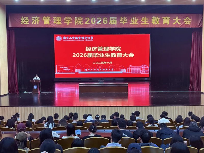 为引导毕业生加强职业规划、把握就业形势、明确职业方向、提升就业能力,10月29日下午,经济管理学院在炎培会堂召开2026届毕业生教育大会。学院党委副书记、院长徐洪波,党委副书记、副院长常敏,教学办公室秘书,全体辅导员,2026届毕业班班主任和全体毕业生参加了本次大会。会议由学生工作办公室主任严潇睿主持。