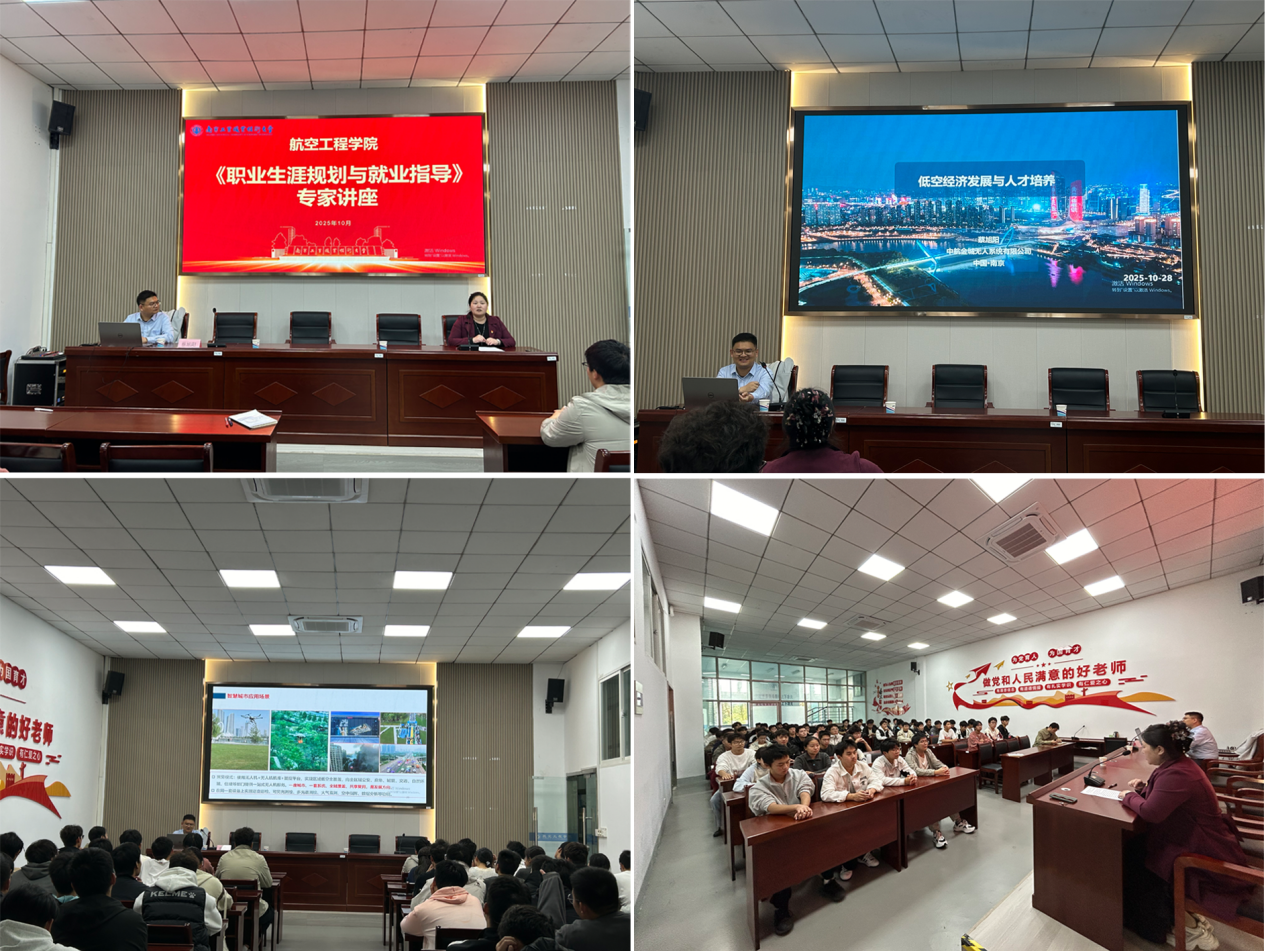 为全面落实《职业生涯规划与就业指导》课程教学要求,引导学生科学树立职业目标,10月29日下午,航空工程学院邀请中航金城无人系统有限公司的蔡旭阳副总师开展题为《低空经济发展与人才培养》的职业生涯规划与就业指导专题讲座。无人机系统应用技术专业2025级全体新生参加本次讲座,讲座由学院副院长张琪主持。