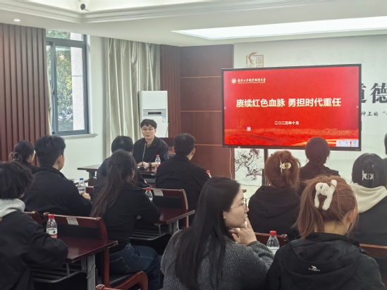 参观结束后,吴启垚结合自身在烈士陵园的工作实践与思考,为学弟学妹们主讲了题为《赓续红色血脉勇担时代重任》的主题党课。他巧妙地将厚重的革命历史与新时代要求相融合,深入浅出地阐述了新时代青年继承和发扬红色传统的实践路径,充分展现了机械工程学院毕业生的专业素养和精神风貌。