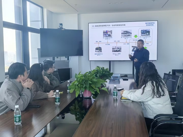 座谈会上,刘立军介绍了公司的发展历程与战略规划,并分享了智能网联汽车领域的前沿技术动态。李晓雯则简要介绍了学校概况与职业教育发展脉络,重点说明了此次调研的目的与合作意向。双方围绕挑战杯、大创赛项目在市场前沿中的应用展开了深入交流与研讨,为学院专业人才培养与竞赛项目孵化提供了新思路,也深化了对新能源汽车与低空经济产业链关联的认知。