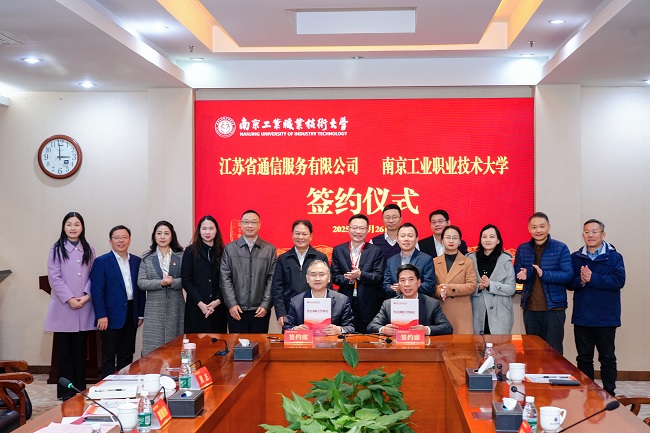 11月26日,我校与江苏省通信服务有限公司人才培养订单班合作项目签约仪式在仙林校区隆重举行。江苏省通信服务有限公司副总经理杨建明,人力部主任常勇等相关部门与所属企业负责人,我校党委副书记、校长何学军,党委常委、副校长潘旭海及相关部门人员参加了签约仪式,签约仪式由潘旭海主持。