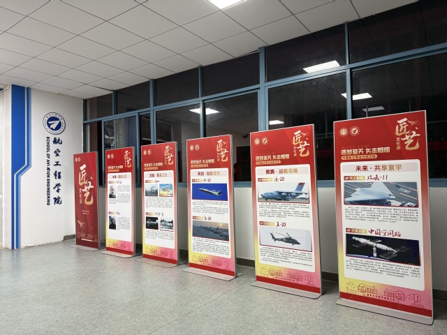 为传承航空报国基因,弘扬新时代工匠精神,11月24日-11月28日,我校航空工程学院在G4二楼举办“逐梦蓝天 矢志翱翔 —— 中国航空事业光辉历程匠艺文化展”。展览通过五大板块,系统呈现中国航空事业从起步探索到领跑前沿的光辉历程,为师生打造了一场兼具思想性、知识性与观赏性的航空文化盛宴。