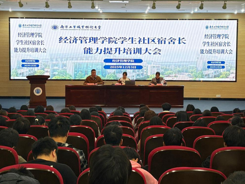 为深入推进“一站式”学生社区综合管理模式建设,夯实社区治理的微观基础,提升宿舍长队伍的综合素养与履职能力,12月3日下午,经济管理学院在学术交流报告厅成功举办了“学以领航,行以筑家”学生社区宿舍长能力提升培训大会。校学工处心理健康中心刘长虹老师,学院辅导员严潇睿、安志超以及24和25级宿舍长代表共计200余人参加了本次大会。