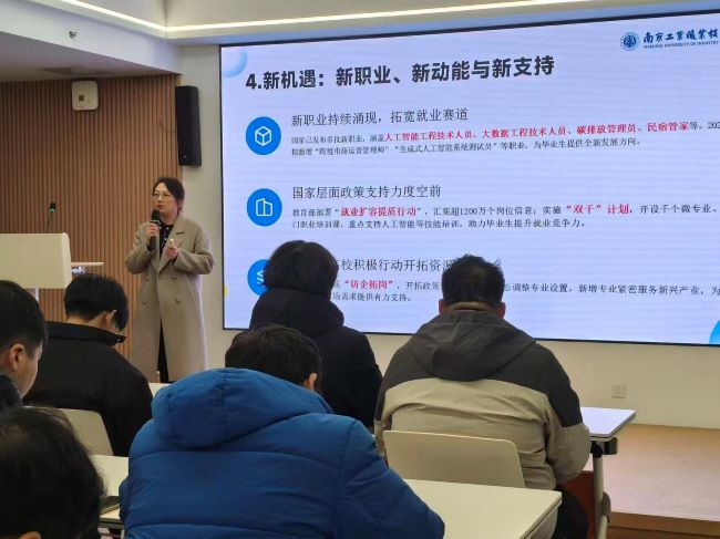 陈赛珊结合最新行业数据,对各专业对应的就业方向展开深入分析。针对电子信息工程专业、集成电路工程专业核心领域,她讲到:在相关产业面临发展挑战的背景下,该领域部分岗位人才需求旺盛,应届生薪资水平也高于传统工科领域;同时,围绕物联网工程技术、现代通信工程等关联专业,她梳理了这些专业对应的岗位能力要求,助力学生清晰了解不同专业可延伸的职业路径。