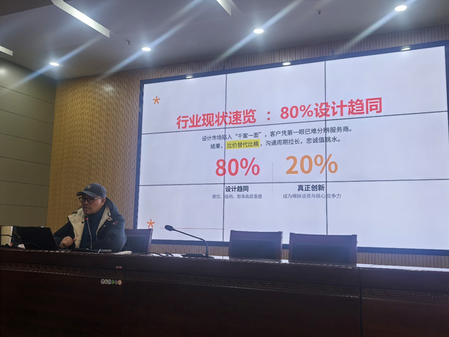 当前,环境设计行业快速发展的同时,也面临着创意趋同、风格单一、核心竞争力不足的行业痛点,如何在海量设计作品中脱颖而出,成为设计师职业发展的关键命题。本次专题讲座紧扣行业痛点,以“差异化生存” 为核心主线,旨在帮助师生理清行业发展脉络,掌握构建设计差异化的思维方法与实践路径。葛威结合自身二十余年的行业经验与经典案例,从同质化困局、根源拆解、客户画像与态度、破局五策、实战落地工具、长期竞争力六个维度,深入解析了同质化陷阱的形成根源与突破策略。