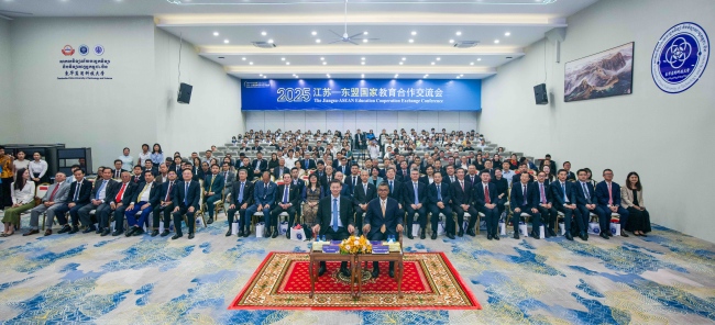 为深化教育领域务实合作与人文交流互鉴,2025年5月24日,“江苏-东盟国家教育合作交流会”在柬华应用科技大学成功举办。江苏省人民政府时任省长许昆林、柬埔寨副首相兼教育青年和体育部大臣韩春那洛(Hangchuon Naron)、泰国教育部部长篷普・奇措(Permpoon Chidchob)、印度尼西亚高等教育与科技部副部长蒋黛兰(Stella Christie)等中外嘉宾出席会议。活动吸引东盟多国近300名教育机构代表及400余名当地学子参与。交流会以“共建未来,共赢发展”为核心主题,搭建起高水平、专业化的教育交流合作平台。会上,各方达成多项实质性合作成果,签约共建数字化技术、新能源发电技术人才联合培养中心,正式启动青年学子双向交流行动计划;同时聚焦数字经济、职业教育等重点合作领域,就完善合作机制等议题达成共识。