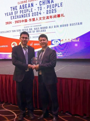 近日,中国-东盟人文交流年闭幕式在马来西亚马六甲州举行。活动中,颁发了“中国-东盟人文交流年十大项目”奖项,由中国江苏省人民政府、柬埔寨教育青年和体育部、泰国教育部、印度尼西亚高等教育与科技部共同主办,中国江苏省教育厅和江苏省人民政府外事办公室承办,我校和柬华应用科技大学协办的2025年“江苏-东盟国家教育合作交流会”获此奖项。“中国-东盟人文交流年”由国务院总理李强于2024年2月致贺信开幕。江苏省教育厅与我校代表应邀出席闭幕式并领奖。