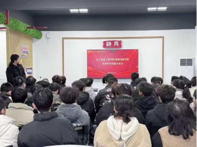 为发挥优秀学生的榜样引领作用,搭建交流学习平台,12月15日,电子信息工程学院/集成电路学院在海棠苑一站式C115职客厅举办优秀学生经验分享会。