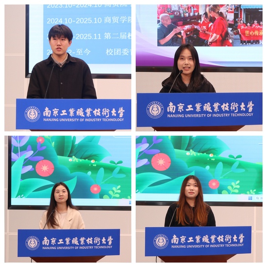 黄炎培特等奖学金获得者仇如飞同学分享了他在南工的成长故事,他鼓励学弟学妹们珍惜时光,勇敢尝试,在行动中书写属于自己的青春篇章。他说:“梦想不是等来的,而是一步步走出来的。”黄炎培自强自立奖学金获得者陈妮鼓励学弟学妹们找准自身定位,既要深耕专业知识筑牢基础,也要积极参与实践活动锤炼能力,更要心怀责任与热爱,在属于自己的青春赛道上奋力奔跑,用实际行动诠释新时代大学生的自强本色。黄炎培道德风尚奖学金获得者赵飞扬同学分享了她聚焦残疾人就业难题,与句容残联合作发起“助残钩织全链帮扶计划”的经历。她寄语学弟学妹:“大学是一场‘自定义’的旅程,勇敢试错、持续行动,在服务与创造中寻找属于自己的光芒。”黄炎培社会服务奖学金获得者杨树凤同学分享了她在志愿服务中从参与者到组织者的成长历程,她鼓励大家诚实面对初心、勇于从最小行动开始,不必等待完美。她建议大家善用信息平台,主动探索发现机会,在尝试中拓展能力边界,用行动遇见更好的自己。