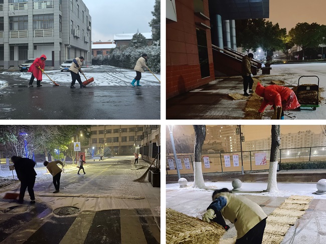 银装素裹添冬韵,同心除雪保畅通。近日,天堂校区迎来2026年首场降雪,翩然白雪在妆点校园的同时,也给师生出行带来不便。为落实艺术设计学院党委部署要求,消除降雪带来的安全隐患,保障师生的顺利出行,天堂校区管理办公室统筹协调,联合艺术学院学生工作部门,带领物业、保卫、餐饮、公寓等多个条口闻雪而动、协同作战,以“早部署、快行动、细落实”的作风,筑牢校园安全防线,用责任与温情铺就畅通之路。