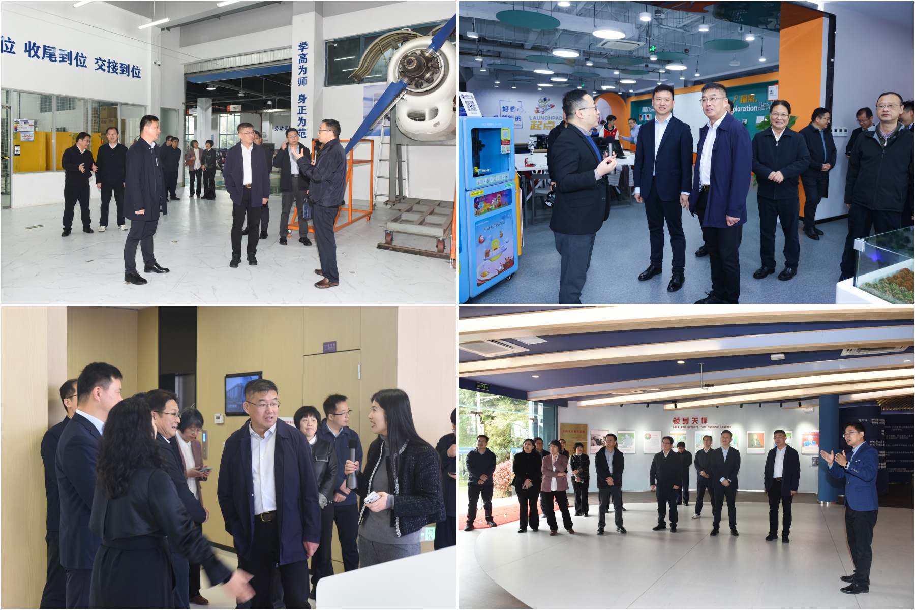调研组先后参观了我校黄炎培职业教育思想展览馆、国家产教融合示范基地、青少年职业体验创新中心、伦敦南岸学院,通过实地考察、现场交流,深入了解我校在人才贯通培养、产教融合、国际合作办学等方面取得的成效。