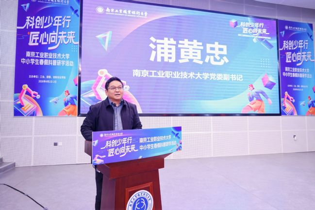 浦黄忠在致辞中表示,本次研学活动依托我校国家级双创示范基地的资源优势,精心搭建八大体验区,推出20余门创新实践课程,希望同学们跳出课本,在沉浸式体验中感受科技的独特魅力,在动手实践中启蒙职业认知,真正度过一个既愉快又有收获的春假。