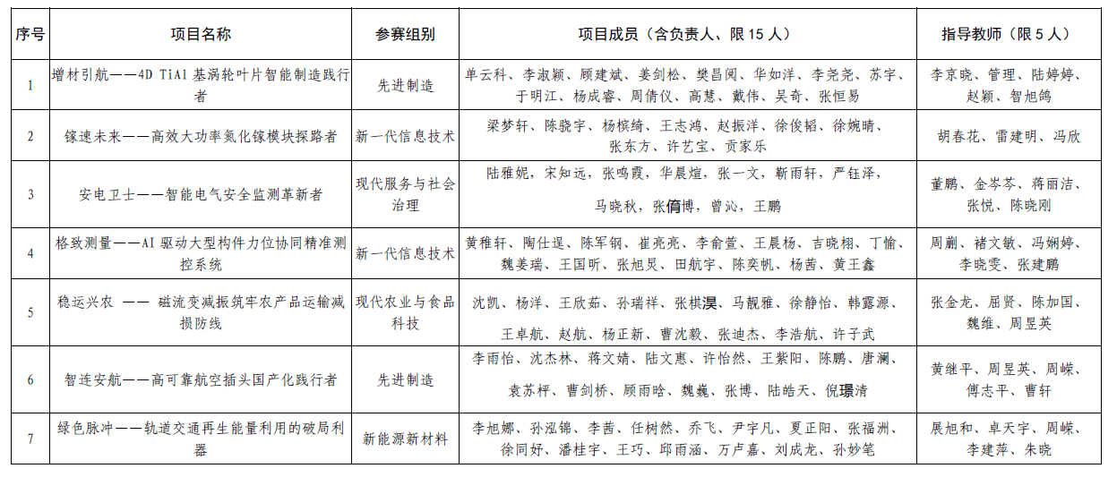 根据《关于组织开展2026年“挑战杯”中国大学生创业计划竞赛江苏省选拔赛的预通知》要求,经学院推荐,校级复赛、终审决赛,我校现拟推荐《镓速未来——高效大功率氮化镓模块探路者》等7项作品参加第十五届“挑战杯”中国大学生创业计划竞赛江苏省选拔赛,现对省赛推荐项目进行公示。公示时间为4月18日—4月23日,如对公示名单有异议,请在公示时间内以电话或书面的形式向校团委反映。