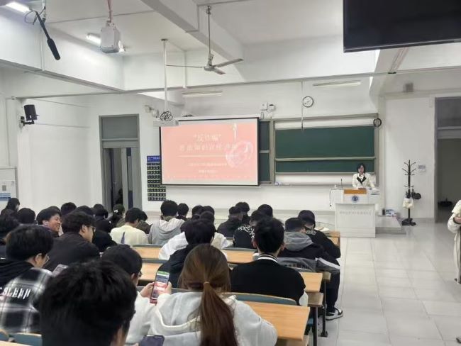 宋红梅立足法律专业视角,用通俗易懂的语言,对当前大环境形势进行分析,介绍了常见诈骗类型及其概念界定,提出了可操作的防范诈骗方法和应对途径。她表示,当前诈骗的高频类型包括冒充公检法、刷单返利、虚假投资理财、网络贷款、冒充客服、交友诈骗及钓鱼链接等。在防范诈骗方面,她向同学们分享了“三不一多”防诈黄金法则,即不透露个人信息、不点击未知链接、不轻信陌生来电和转账汇款多核实。如不慎遭遇诈骗等相关信息的误导,发现后应立即停止操作、全面保存证据、切勿删除信息,通过法律途径维护自身合法权益。宋红梅还做出了防诈骗的总体重要提示,要保护好个人信息、做好物品管理,切勿出租、出售、出借个人名下的银行卡和电话卡,若遇到陌生人提出可疑的、涉及财产的请求,坚决拒绝。会议最后,她提醒全体学生高度重视反诈,牢记防范要点,主动远离诈骗陷阱,同时带动身边同学共同筑牢反诈防线。