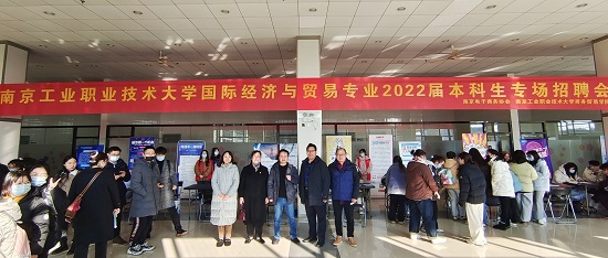 12月29日下午,商务贸易学院顺利举办国际经济与贸易专业专场招聘会,招聘会由南京市电子商务协会和商务贸易学院共同主办。南京市电子商务协会秘书长陈武光、学院党政领导班子成员、国贸专业教师、本科毕业班班主任、以及全体本科毕业生参加了招聘会。
