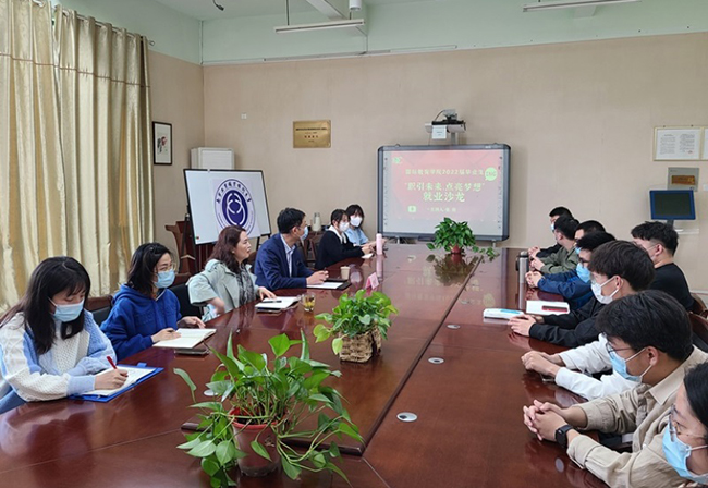 5月11日,国际教育学院在乐群楼421会议室举办了“职引未来,点亮梦想”就业沙龙。学校党委常委、副校长孙雁飞应邀出席,会议由国际教育学院直属党支部副书记、副院长张莉主持,全体辅导员和20余名2022届毕业生参加了此次沙龙。师生们围绕个人职业梦想与国家发展、转本深造、求职就业等话题展开热烈的交流与探讨。