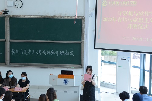 6月7日,计算机与软件学院在乐群楼J102举办“青年马克思主义者培养工程”培训班开班仪式。学院党总支书记刘英慧、党总支副书记张振峰,团总支书记、辅导员以及全体培训班成员150人参加。