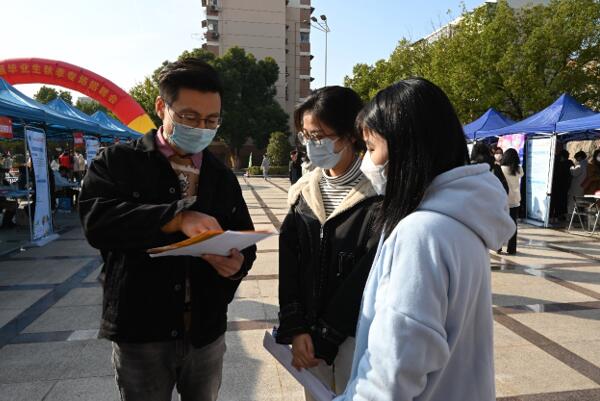 本次招聘会严格落实疫情防控最新要求,现场严格按照限流控量、分批进场的方式引导毕业生进场求职,认真排查进校企业及相关人员信息,精选南京地区24家用人单位进校招聘。创新开展线上交流,现场设置展台开启腾讯会议,为4家因疫情防控不能到场企业搭建线上平台,拓宽毕业生与企业的沟通交流通道。招聘会现场毕业生求职热情高涨,认真投递简历和选择适合岗位和单位,详细咨询意向公司企业情况、招聘要求、工作环境和未来发展方向等。用人单位积极主动向毕业生介绍企业的运营状况、薪资待遇、工作环境等,普遍认为我校毕业生求职意向高、准备充分,纷纷表示希望建立常态化的人才供需合作关系。