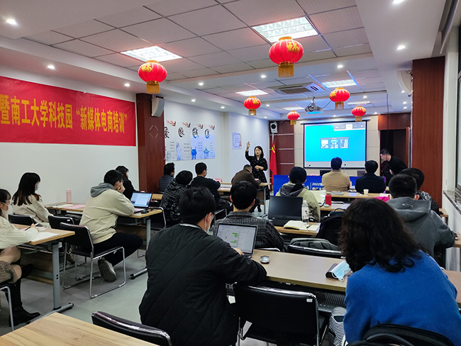 为创新企业服务模式,充分发挥高校资源优势,助力园区企业实现高质量发展,11月22日,由秦淮区科技局主办,南京工业职业技术大学科技园、南京金蝶软件园、南工E创空间共同承办的“创新创业·赢在秦淮”2022第七届秦淮创客周暨南工大学科技园新媒体电商培训在我校大学科技园成功举办。秦淮区科技局副局长孙正广、区域创新科科长李俊喜、南京工业技术大学商务贸易学院院长阮晓文以及园区企业家代表、创新创业师生代表出席了本次培训活动。此次培训还在微信视频号“南工科技园”设有线上直播分会场,共计四十余家企业参与,观众覆盖面超500余人。