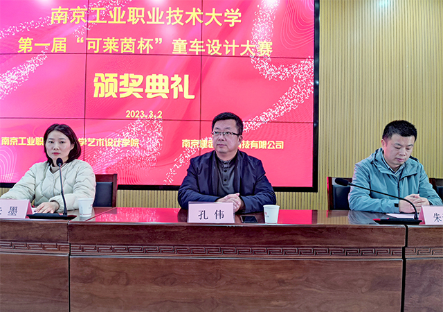 为推进产教融合,深化校企合作,南京工业职业技术大学艺术设计学院与南京建武电子科技有限公司联合举办了首届“可莱茵杯”童车产品创意设计大赛,学院将大赛融入实训项目教学,为企业开发了一批高质量的童车设计方案,受到企业的高度认可。经校企专家评审,评选出一、二、三等奖6名,优秀奖15名,优秀指导教师2名。3月2日下午,校企双方在天堂校区综合楼六楼报告厅隆重举行了大赛颁奖典礼,艺术设计学院院长孔伟、南京建武电子科技有限公司总经理朱墨以及学院师生代表参加了此次典礼。