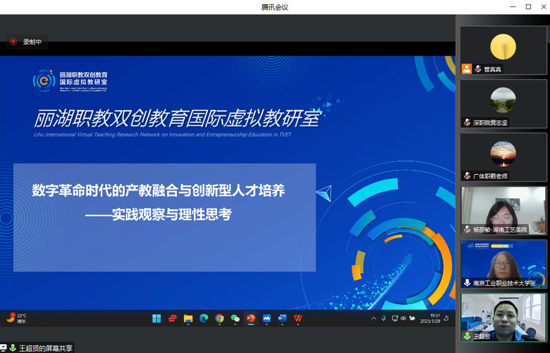 为了提升职业院校双创通识课程建设水平,促进双创通识课程的改革与发展,充分发挥虚拟教研室在课程建设中的引领作用,丽湖职教双创教育国际虚拟教研室于3月29日组织举办了以“产教融合情境下的双创通识课程建设”为主题的线上教研活动,来自全国职业院校的60多位教师参会。本次活动由我校创新创业学院和天津轻工职业技术学院创业教育中心共同承办,我校创新创业学院副院长张秀芹主持了教研活动。