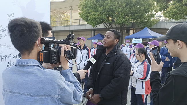 活动接近尾声,我校尼日利亚籍留学生大卫在现场接受了中新网等媒体的采访。大卫说:“我感到非常幸运能够参加此次意义非凡的活动,通过徒步进一步探寻和了解南京大屠杀这段令人悲痛的历史,我更加感到今日的和平来之不易。我会让更多身边的朋友了解南京大屠杀这段历史,让大家一定要珍惜和平。”大卫表示,江东门纪念馆授予他的纪念牌他将珍藏,以纪念此次终身难忘的活动。大卫还表示,作为一名新加入的国际志愿者,他非常愿意做好和平使者,把南京历史讲给世界听。