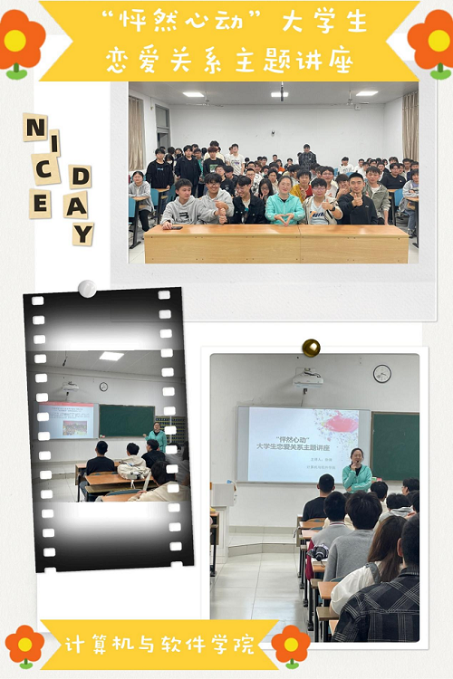 在大学校园里,恋爱是一个备受关注的话题。大学生正处在青春后期阶段,容易对异性产生好感,渴望得到异性的关注。但是由于缺乏与异性交往的经验和教育,往往会面临诸多问题和困扰。为了帮助大家了解亲密关系,理性对待恋爱关系,计算机与软件学院心理辅导员徐清老师于2023年4月14日下午三点半在乐群楼301教室为大家开讲“怦然心动”大学生恋爱关系主题心理讲座。