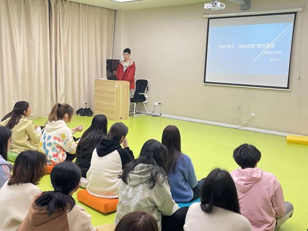 4月6日晚,学院举办了“倾听音乐,放松自我”心理团辅活动,用音乐的力量消除学生的学习紧张感、提升心理调节能力。活动中,主持人随机播放了多首音乐曲目,并让同学们上台分享听完音乐的感受。在分享的过程中,同学们诉说了自己聆听音乐的所思所感、讲解了用音乐来排解内心烦闷、纾解负面情绪的小技巧。整场活动让大家心情愉悦、身体放松,积极热情的交流和讨论,拉近了彼此之间的距离,也提供了很多减轻心理压力的小技巧。