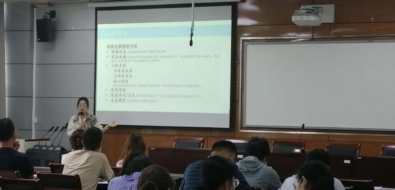 本次沙龙回顾了近五年教育部关于心理健康教育工作的相关文件,带领老师们深入领会上级主管部门对大学生心理健康工作提出的“精准、专业、细致、协同”的工作要求;结合具体的案例,与大家讨论了当前大学生心理危机事件诱发原因复杂的新特点,共同探索了心理问题背后的深层次原因,帮助大家精准把握00后学生的心理健康状况。周老师还与大家分享了从情绪状态、学业困难、人际交往、恋爱情感以及未来规划等五个方面与学生开展谈心谈话的工作技巧和注意事项。