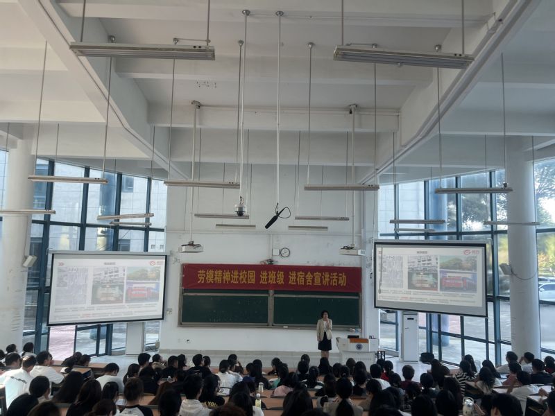 10月18日下午,经济管理学院在乐群楼J102阶梯教室举行“劳模工匠进校园、进班级、进宿舍”宣讲活动,邀请全国劳动模范、南京新街口百货商店股份有限公司中心电子商务部总监吕雪瑾主讲,各班级生活委员、宿舍长等学生干部代表参加活动。