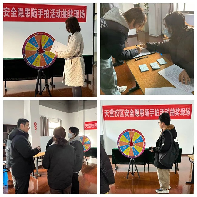 本次活动分为隐患报送、集中评审、抽奖领奖三个阶段。经广泛动员,活动得到广大师生的踊跃参与。在隐患报送阶段,有23名师生通过企业微信“隐患随手拍”模块上传天堂校区内存在的安全隐患,累计报送条数达到40条,内容覆盖消防安全、治安、用水用电安全、餐饮安全以及校内建筑物、公共设施安全等各个领域。对于收集到的隐患信息,天堂校区管理办公室均予以高度重视,及时做好实地勘查工作,核实情况并推进整改。