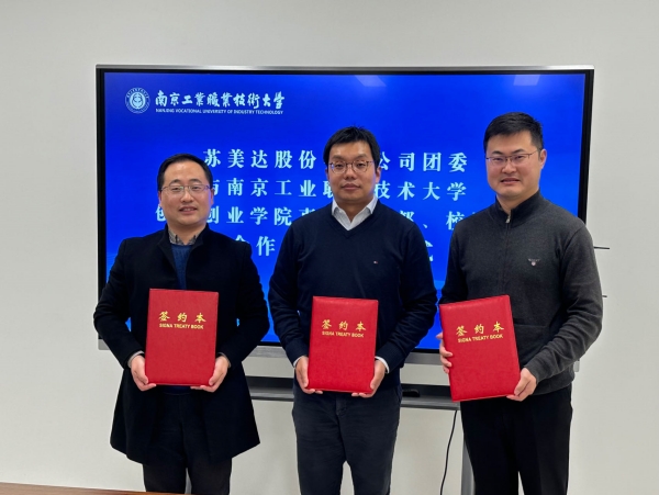 签约仪式上,双方分别介绍了所在单位基本情况,并就今后合作共建内容进行了深入交流与探讨。随后,苏美达股份有限公司团委与创新创业学院直属党支部、校团委相关负责人共同签署了合作共建协议。三方将通过共建活动平台、分享工作资源、交流工作经验、解决实际问题等途径,协调推动大学生就业创业、科技创新、社会实践、志愿服务等工作,实现党团建设与企业发展、高校创新良性互动。