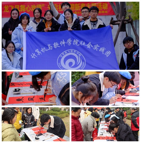 迎春送福写春联,翰墨飘香添年味。为更好地弘扬中华优秀传统文化,助力基层社区文化建设,1月6日,计算机与软件学院组织青年志愿者协会、书法社团的学生前往栖霞区仙林街道光启路社区开展“翰墨飘香进社区,传统文化润民心”活动,用浓墨倾情为居民送上新春祝福。
