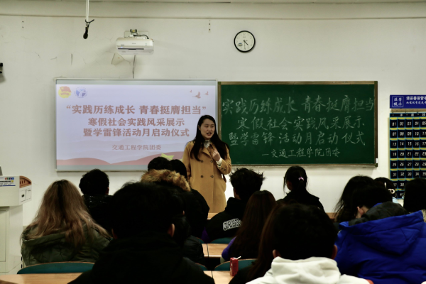 为深入学习宣传贯彻党的二十大精神,贯彻落实习近平总书记关于青年工作的重要思想,深化实践育人成效,发挥优秀社会实践活动示范引领作用,鼓励同学们积极投身实践,交通工程学院团委于3月1日中午12:20在乐群楼202开展寒假社会实践风采展示暨雷锋月活动启动仪式,学院团委书记周嵘、院青马班成员和各实践团队学生出席了此次活动。