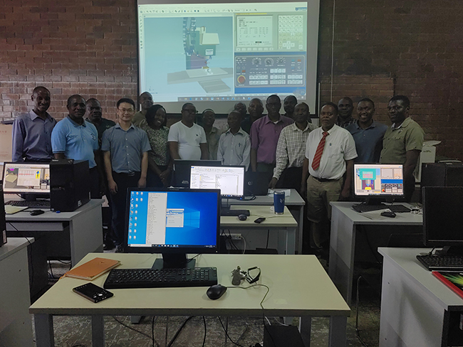 近日,中国-赞比亚职业技术学院(以下简称“中赞职院”)南工机电分院组织开展的数控加工师资专项培训圆满结束。本次培训自2023年12月28日启动,历时近2个月,来自赞比亚铜带省大学、赞比亚北方技术学院、基特韦职业技术学院、基特韦职业培训中心、基特韦培训学校和中赞职院等多所高校的30名专业教师参加,我校机械工程学院缪辉博士全程授课。本次培训提升了赞比亚高校教师的数控加工技能,为赞比亚培养急需的本土技术技能师资,以技术技能助推“一带一路”倡议走深走实,获得赞比亚科学技术部等相关部门的高度认可。