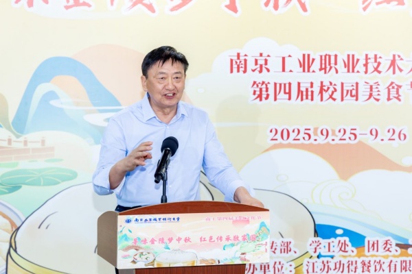 金风送爽,硕果盈枝。为弘扬中华美食文化,丰富师生校园生活,发挥后勤服务育人作用,9月25-26日,学校党委宣传部、学生工作处、团委、工会、后勤管理服务中心联合江苏功得餐饮有限公司在仙林校区第二食堂广场举办“寻味金陵梦中秋,红色传承敬家国”第四届校园美食文化节。江苏省高等学校后勤协会副会长兼秘书长黄在宇,南京市市场监督管理局食药支队副支队长李明华,栖霞区市场监督管理局副局长顾萍,栖霞区市场监督管理局仙林分局局长段联国,江苏省高校后勤协会高职分会会长、副会长、秘书长和副秘书长,以及我校党委副书记浦黄忠,党委常委、副校长崔新明、潘旭海、高宏彦,兄弟院校后勤处长、校内服务的餐饮企业负责人共计60余名代表出席开幕式。开幕式由后勤管理服务中心主任谭建华主持。