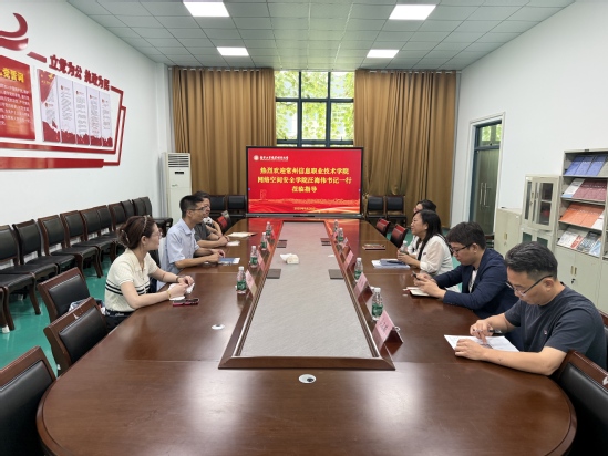 会上,刘英慧对汪海伟一行人的到来表示热烈欢迎,介绍了学院情况和党建工作开展情况,重点介绍了全国党建工作样板支部和全国高校“双带头人”教师党支部书记工作室建设情况。汪海伟分享了网络空间安全学院党总支的特色做法和全国党建工作样板党支部的建设成果。随后,双方围绕党建赋能中心工作等展开交流。双方一致认为,要进一步加强两院在党建理论研究、党员教育培训、党日活动开展等方面的交流合作,共同探索新时代高校基层党组织建设的新路径、新方法。