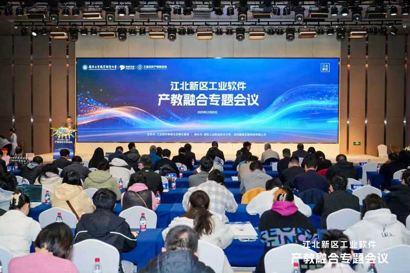 成立大会上,工业软件产教联合体与全国工业互联网产教融合共同体围绕人才培养模式创新与产业学院建设等核心议题,组织开展了系列专题报告。江北新区中央商务区科技人才负责人李熙阳系统解读了新区科技人才支持政策。我校计算机与软件学院院长胡光永全面分享了近年来在工业软件行业应用领域的办学探索与实践成果。深圳蜂巢互联科技有限公司陈新法深入介绍了校企协同共建特色产业学院的实施路径。中聚创意设计产业(南京)有限公司总经理宋宁聚焦新一代工业软件与低空经济的跨界融合趋势,提出了产教协同发展的新思路。在随后的研讨交流环节,五位专家围绕工业软件产业发展态势与高素质技术技能人才培养等关键问题,展开了深度对话,为推动“四链对接”提供了有益借鉴。