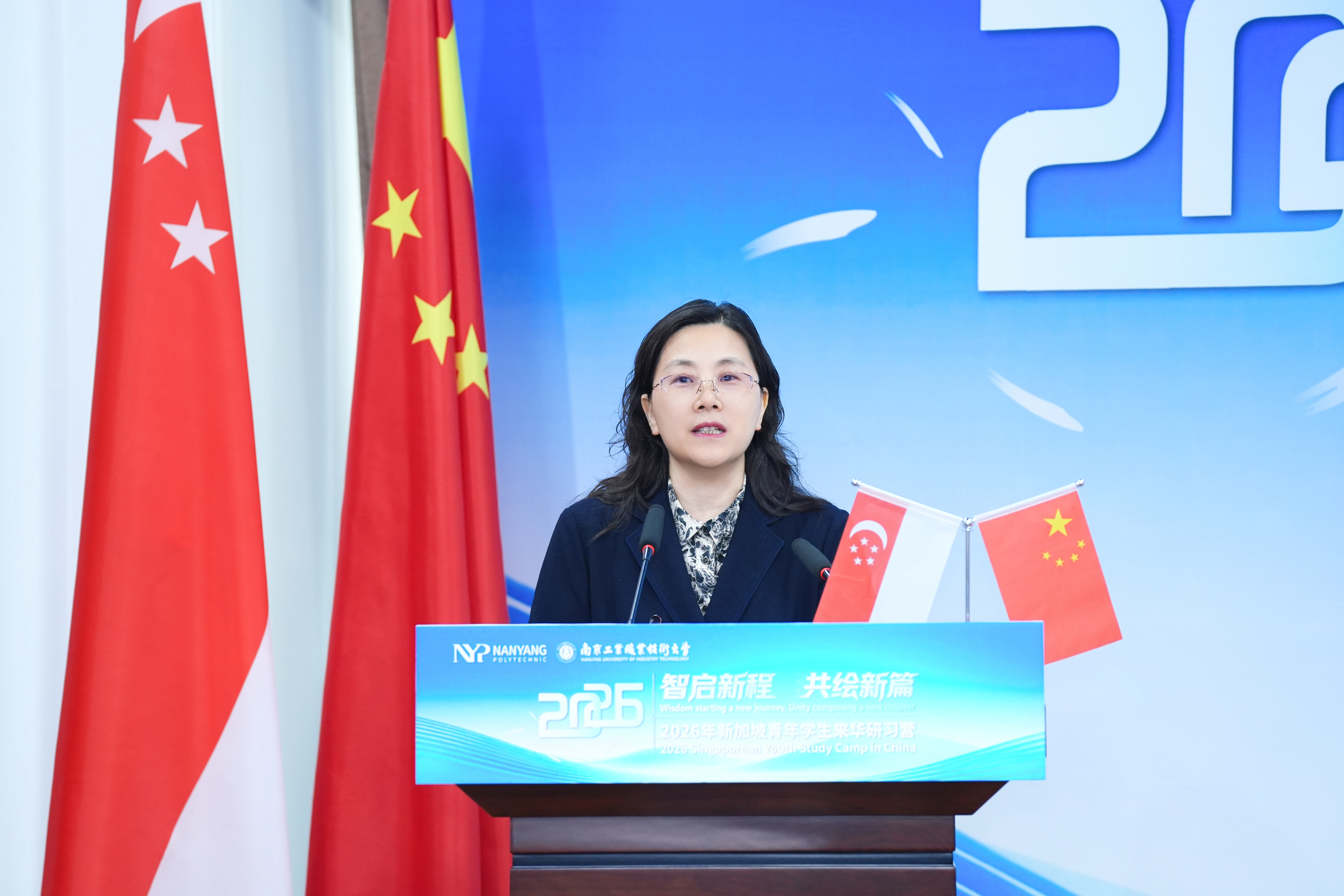 活动期间举行了开营仪式。开营仪式上,校党委常委、副校长魏萍代表我校向新加坡南洋理工学院师生致以热烈欢迎。她指出,新加坡职业教育体系完善,是我校国际化办学的重要标杆与合作伙伴。南洋理工学院治学严谨、实力雄厚,与我校理念相契、优势互补。此次研习营是两校合作举办的第四期青年学生研习营,项目聚焦工商管理、旅游与酒店管理专业领域,是两校深化合作的务实举措,也是中新青年交流互鉴、共话未来的生动实践。她希望同学们珍惜研学机会,潜心学习、勇于实践,走进南京、感知中国,不断拓宽国际视野,做到学有所获、研有所得,在互学互鉴中增进友谊,争做中新友好的青春使者,携手共绘两国教育合作新篇章。